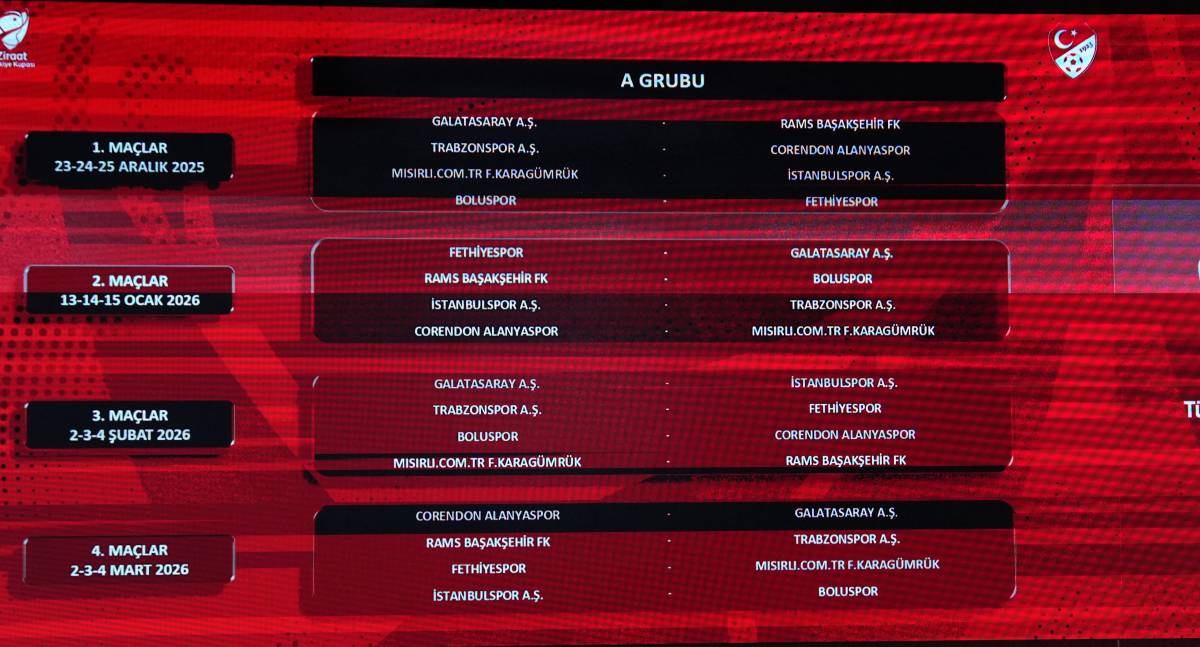 TFF tarafından açıklanan takvime göre Ziraat Türkiye Kupası grup aşamasında ilk müsabakalar 23, 24 ve 25 Aralık 2025 tarihlerinde oynanacak. Grup aşamasının son karşılaşmaları ise 3, 4 ve 5 Mart 2026 tarihlerinde yapılacak. Bu süreçte takımlar, hem lig hem de Avrupa hedefleri doğrultusunda yoğun bir fikstürle karşı karşıya kalacak.